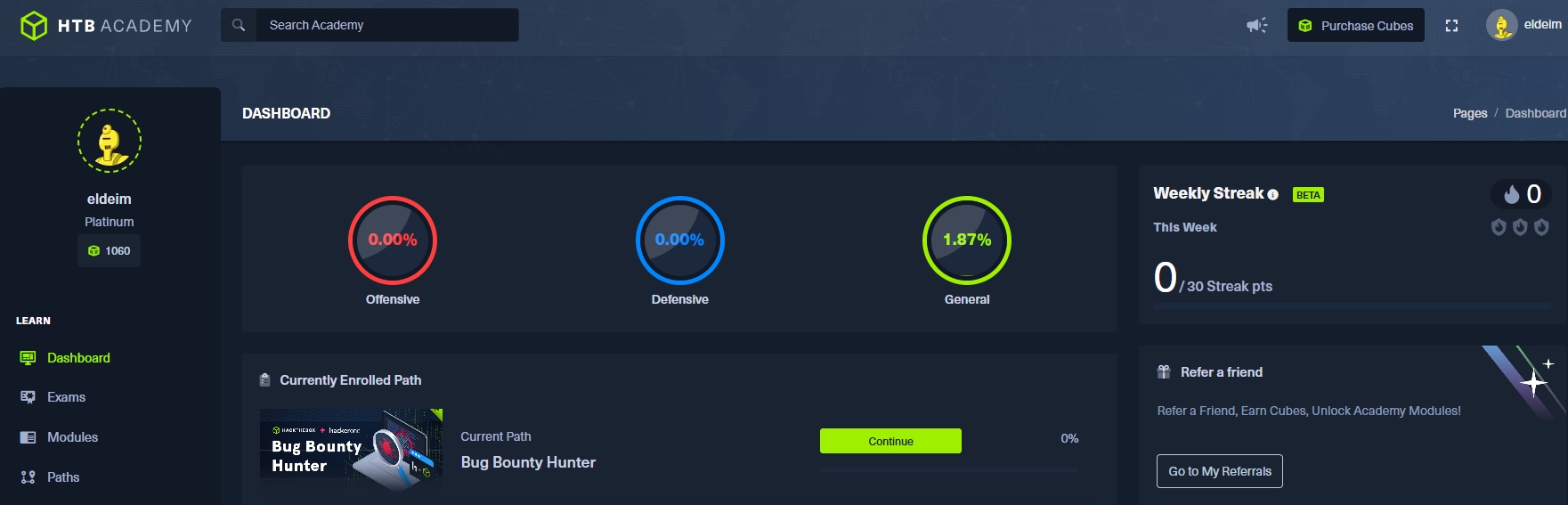 First you need a account academy on htb. If you have not any account a reccomend you create a new about this reference link. This link is a "promoional" link, yes... BUT!! If you enter with that you get cubes free and... Believe me that later on you will understand why you will need them.
